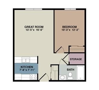 Modelo de apartamento: 1 Bedroom1 Dormitorio, 1 Baño, 600 sq ftNo Disponible![]()