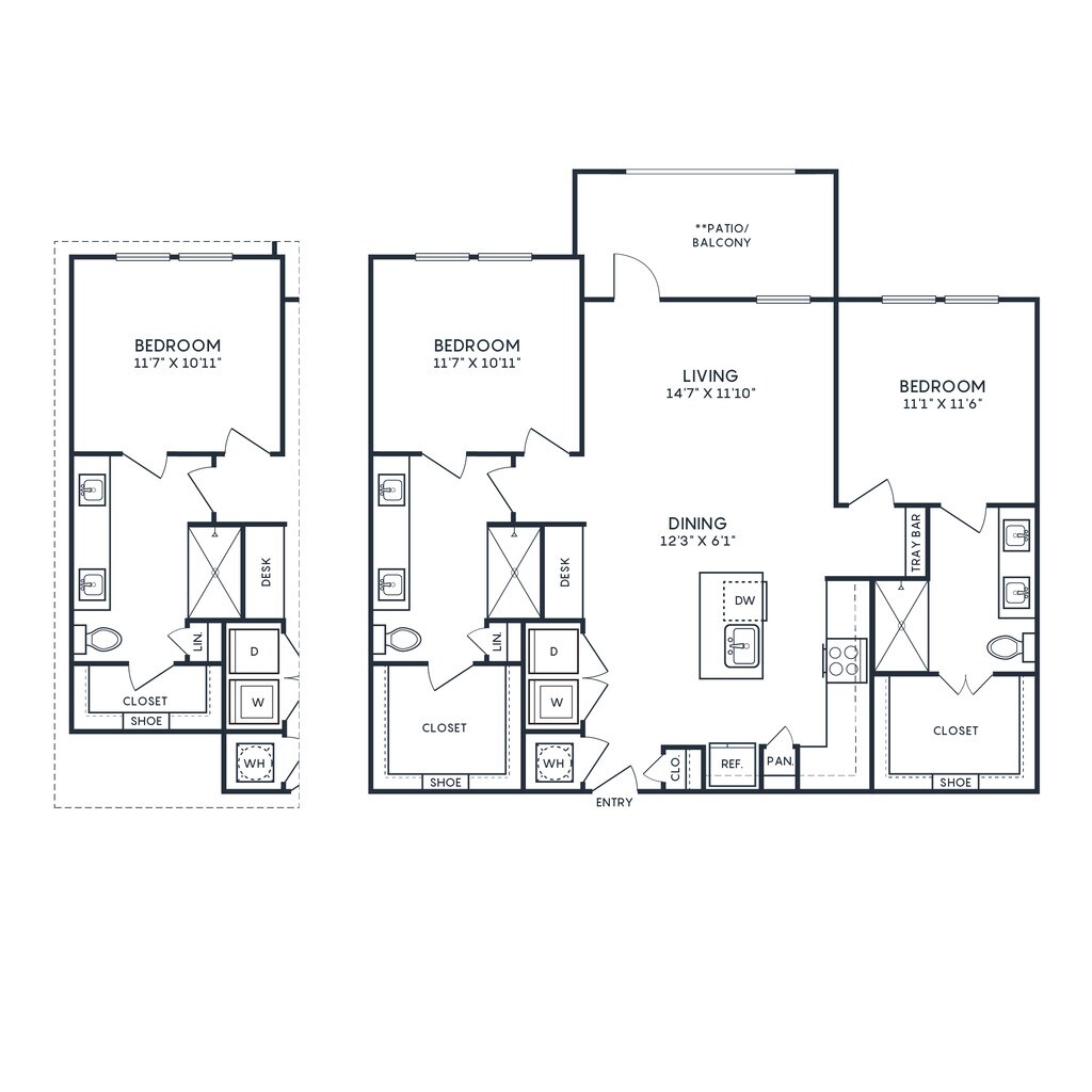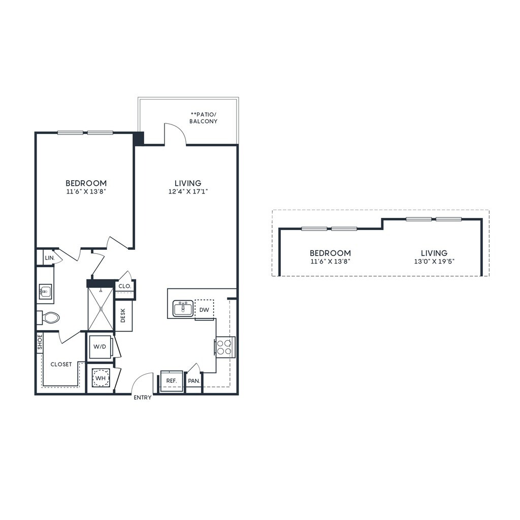 1 Dormitorio, 1 Baño, 1021 pies²Disponible Dec 9El más grandeEsta opción tiene las unidades más grandes para este modeloGalería del Modelo