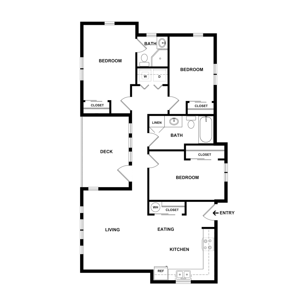 3 Dormitorios, 2 Baños, 1001 pies²Galería del Modelo