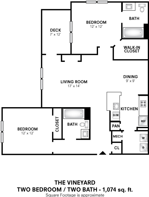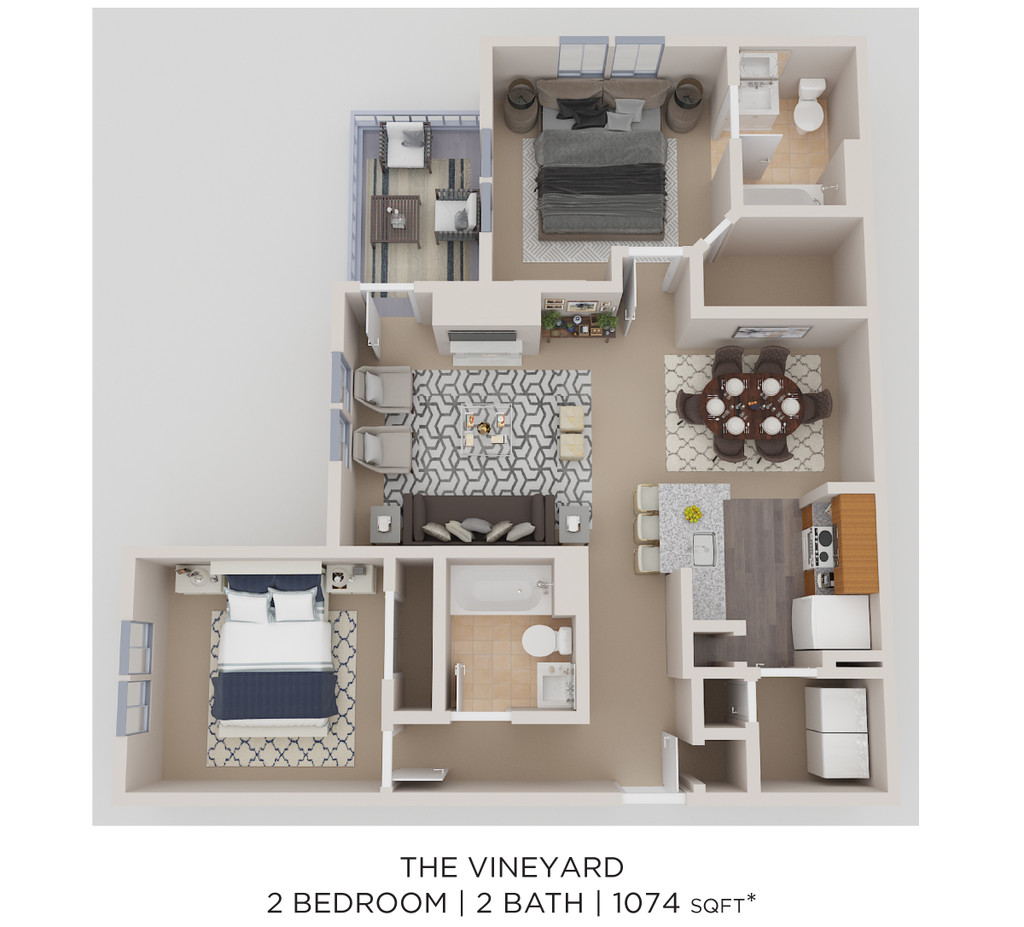 Modelo de apartamento: Two Bedroom 2 BathDesde $1,3972 Dormitorios, 2 Baños, 1074 sq ftDisponible Ahora![]()