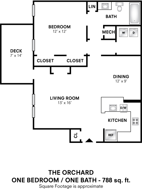 Modelo de apartamento: One BedroomDesde $1,3531 Dormitorio, 1 Baño, 788 sq ftDisponible Ahora![]()