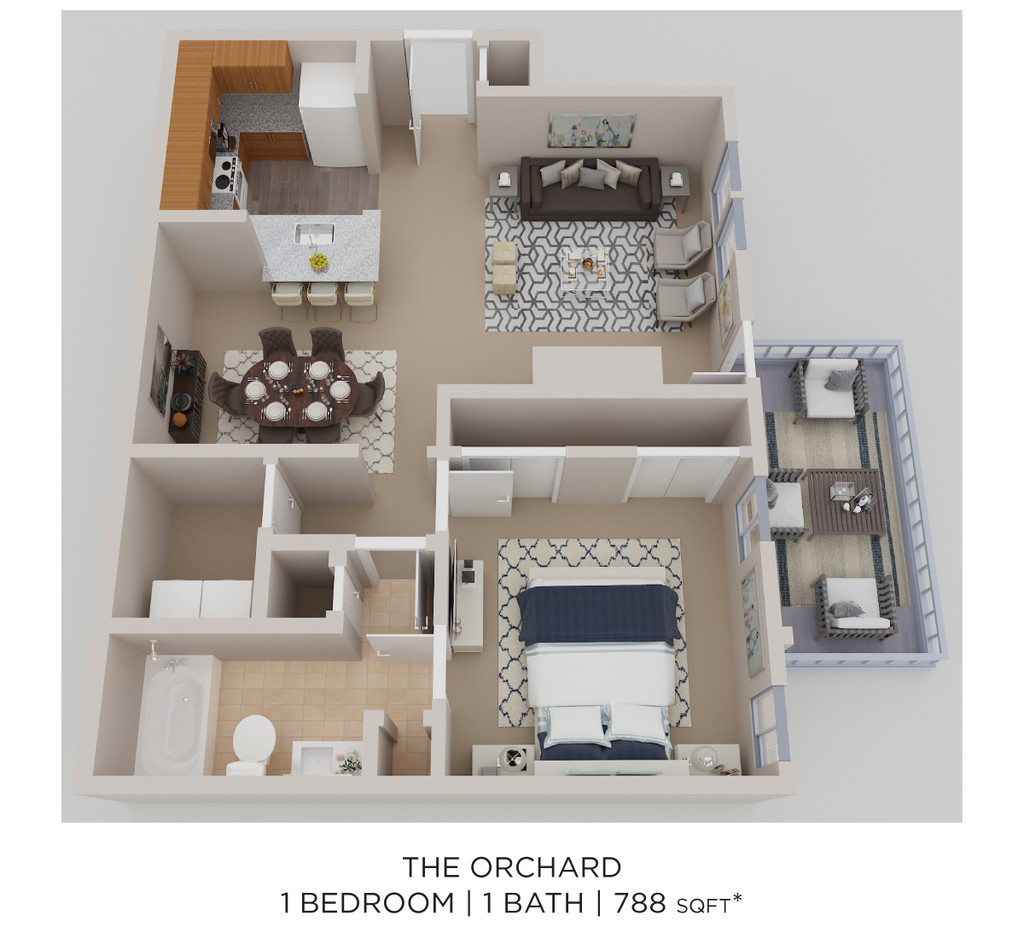 1 Dormitorio, 1 Baño, 788 pies²Disponible AhoraGalería del Modelo