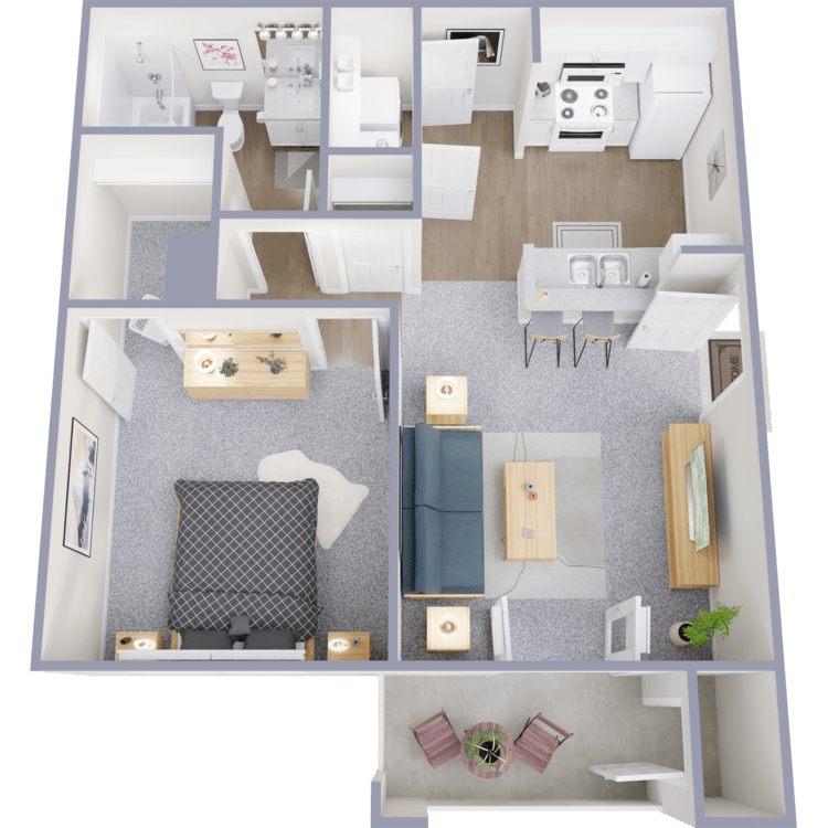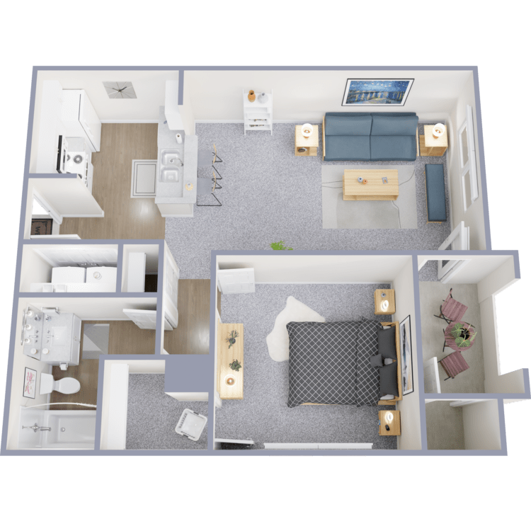 1 Dormitorio, 1 Baño, 633 pies²Disponible AhoraGalería del Modelo