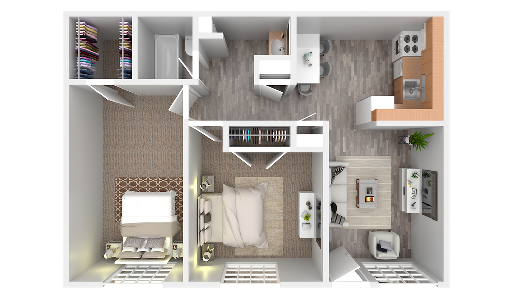 Modelo de apartamento: Garnet2 Dormitorios, 1 Baño, 765 sq ftDisponible January 25, 2026PlanosFotos![]()