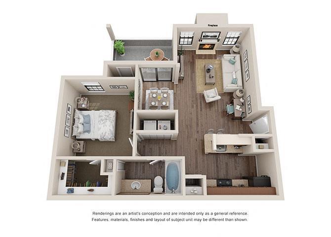 Modelo de apartamento: A4Desde $1,2311 Dormitorio, 1 Baño, 752 sq ftDisponible Ahora![]()