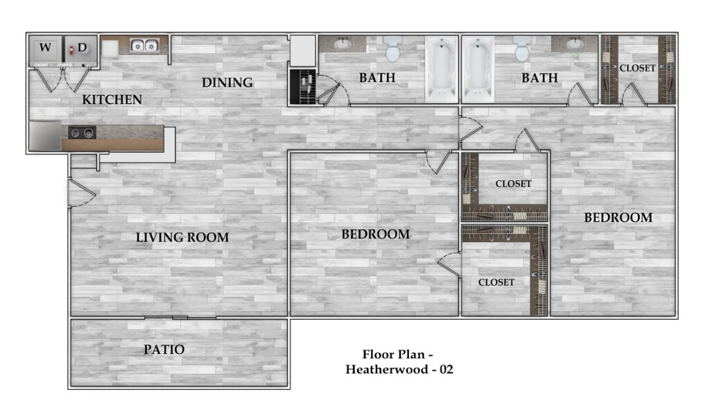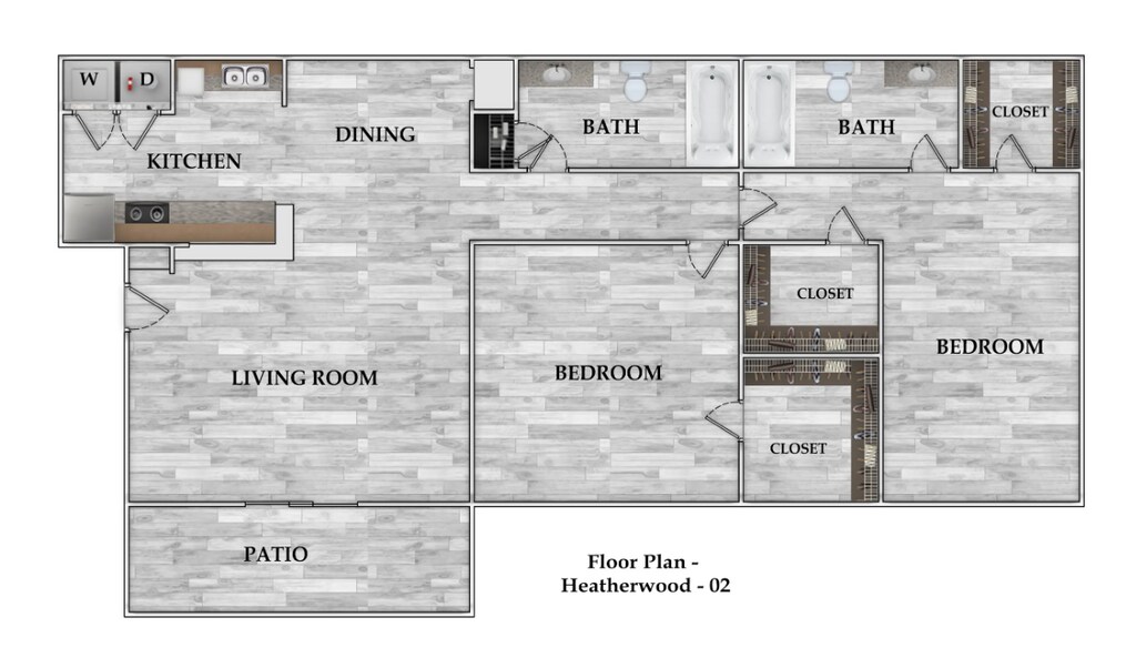 2 Dormitorios, 2 Baños, 959 pies²Disponible AhoraEl más grandeEsta opción tiene las unidades más grandes para este modeloGalería del Modelo