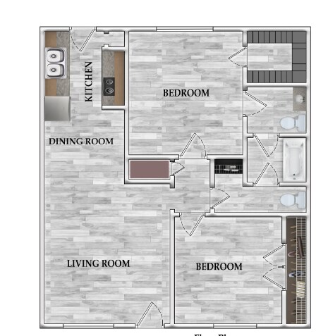 2 Dormitorios, 1 Baño, 879 pies²Galería del Modelo