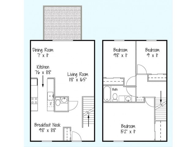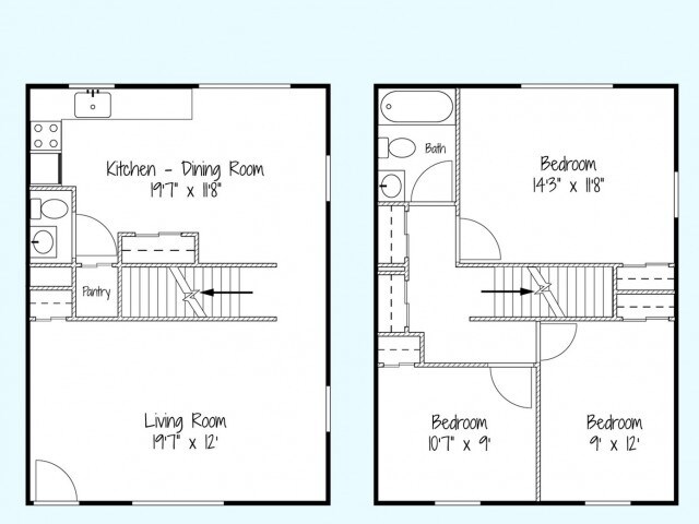 2 Dormitorios, 1 Baño, 1000 pies²Galería del Modelo