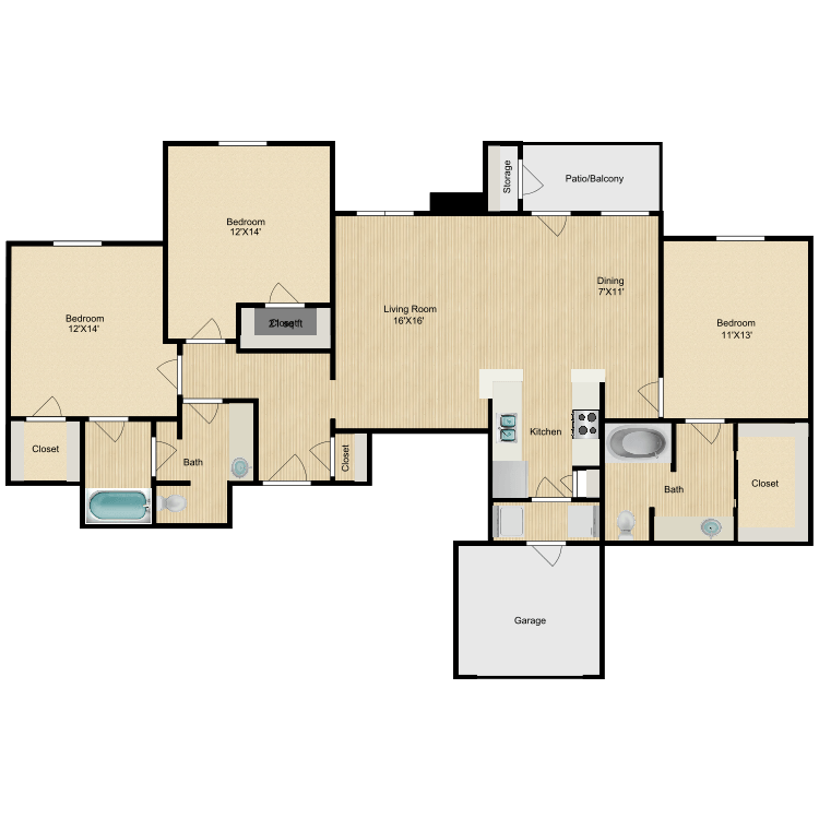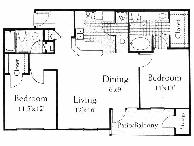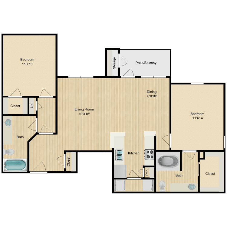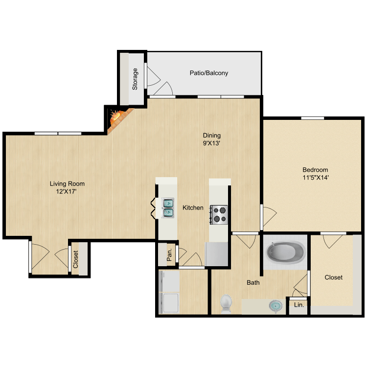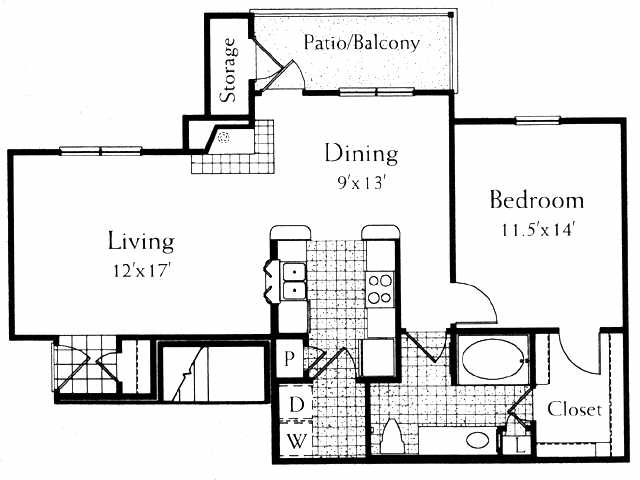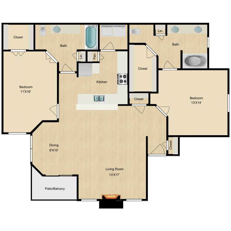 Modelo de apartamento: A2Desde $1,1701 Dormitorio, 1 Baño, 761 sq ftDisponible Ahora![]()
