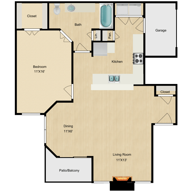 1 Dormitorio, 1 Baño, 761 pies²Disponible AhoraGalería del Modelo