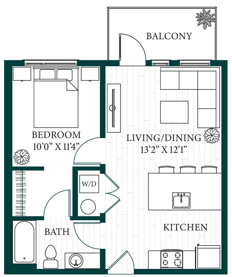 Modelo de apartamento: BasilLlame para Precios1 Dormitorio, 1 Baño, 779 sq ftNo Disponible![]()