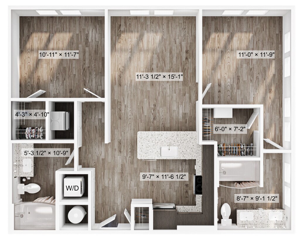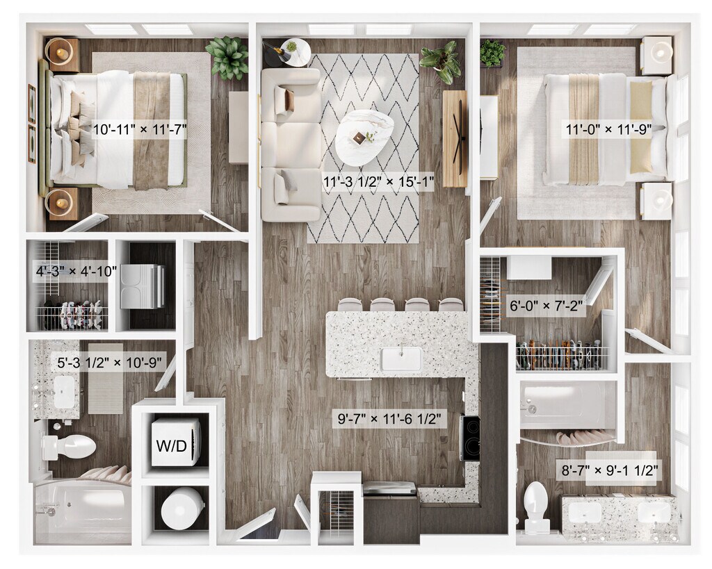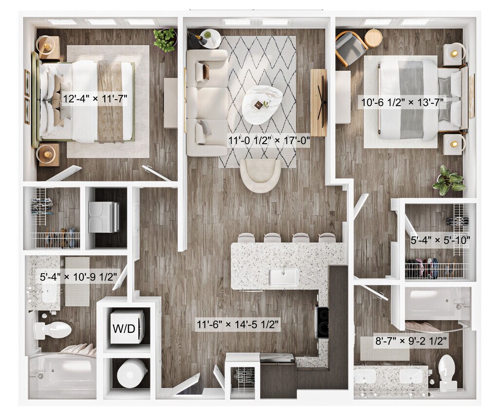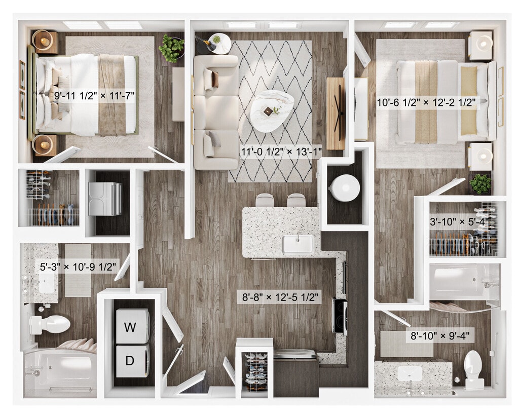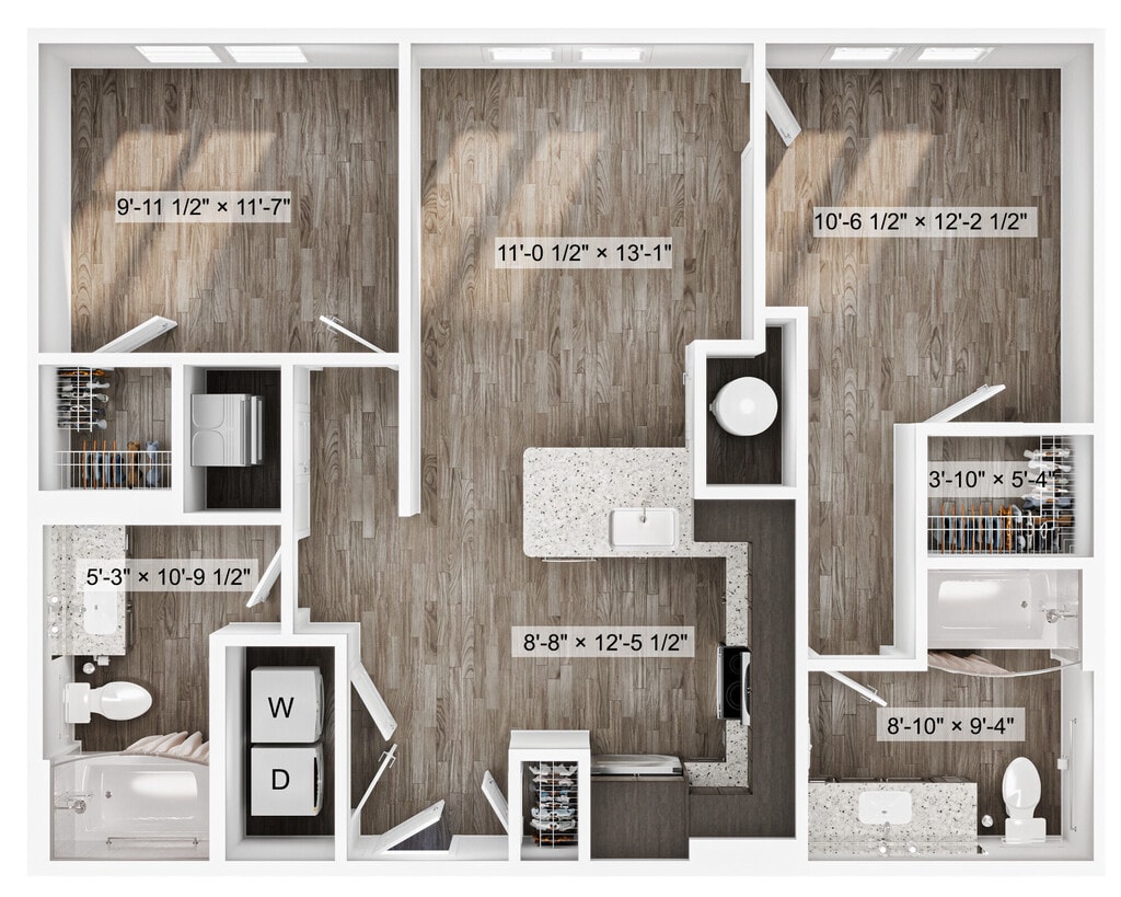 2 Dormitorios, 2 Baños, 937 pies²Disponible AhoraGalería del Modelo