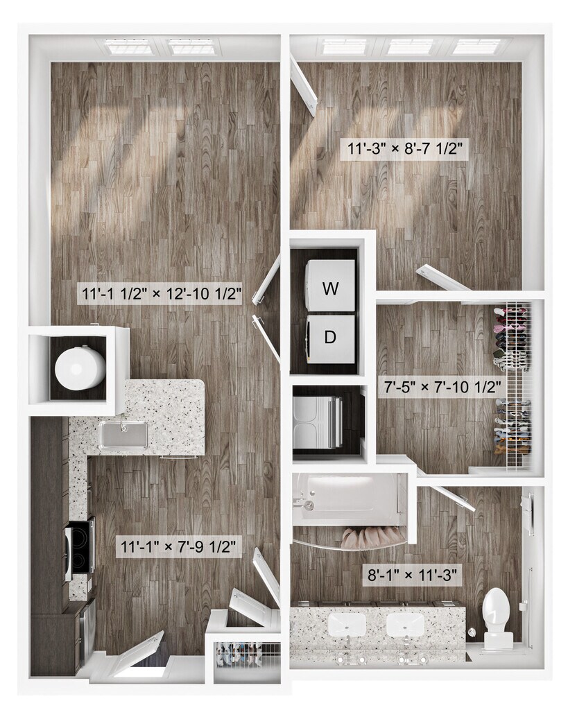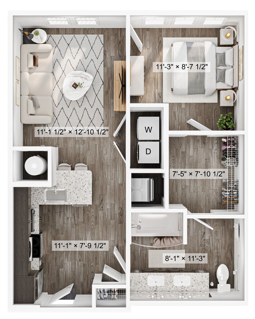 1 Dormitorio, 1 Baño, 673 pies²Disponible AhoraGalería del Modelo
