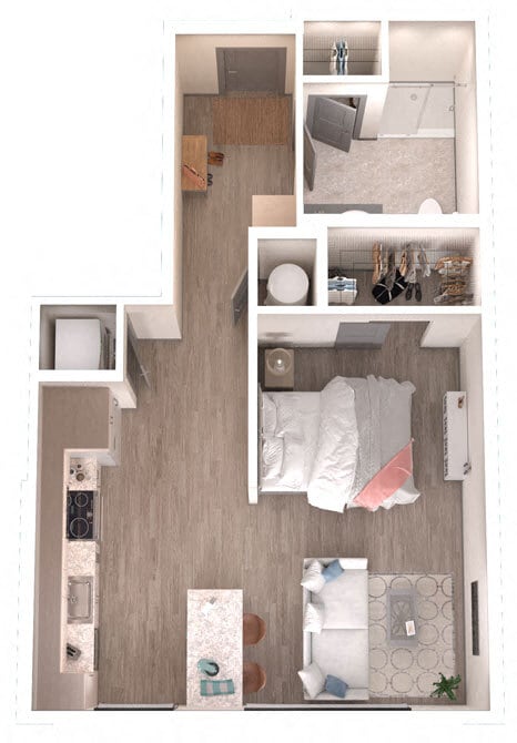 Halo - Plano 1 Unidad de apartamento: 331Modelo de apartamento: Halo$1,590Estudio, 1 Baño, 546 sq ftDisponible January 8, 2026Zenith