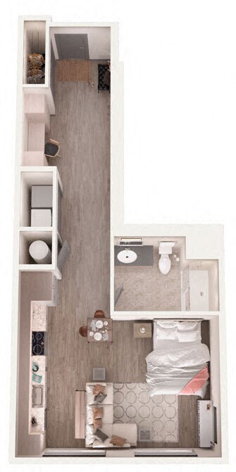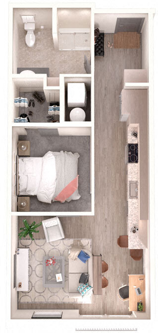 Modelo de apartamento: ZenithLlame para PreciosEstudio, 1 Baño, 576 sq ftNo Disponible![]()