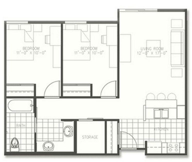 2 bed 1 bath - Plano 2 ![]()