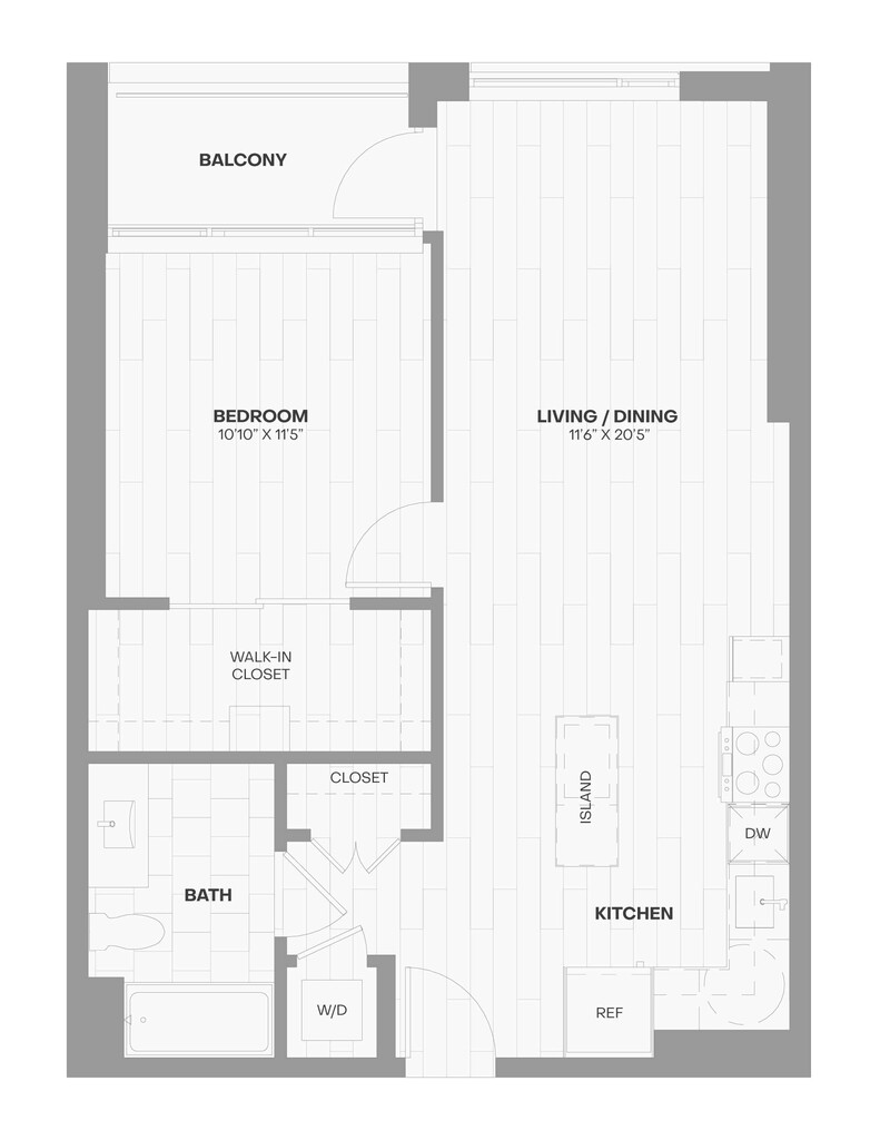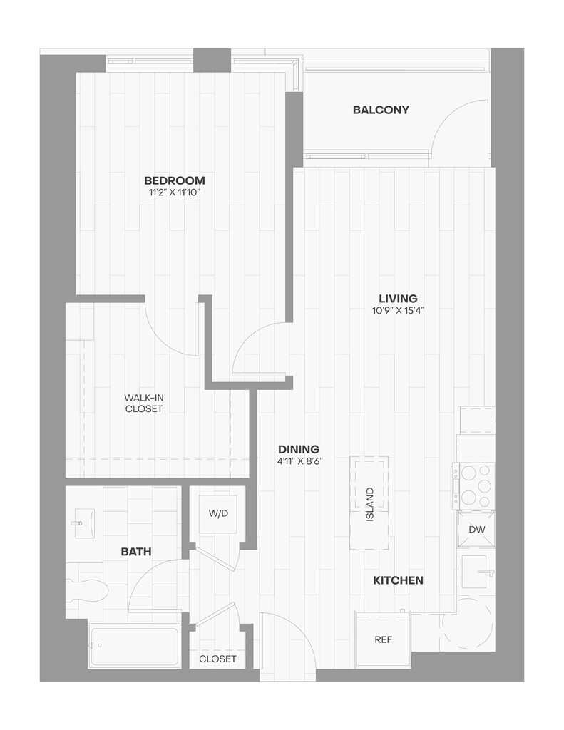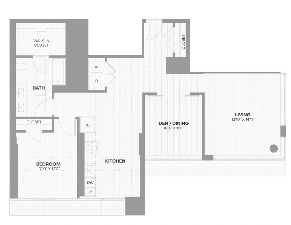 1 Dormitorio, 1 Baño, 640 pies²Disponible AhoraGalería del Modelo