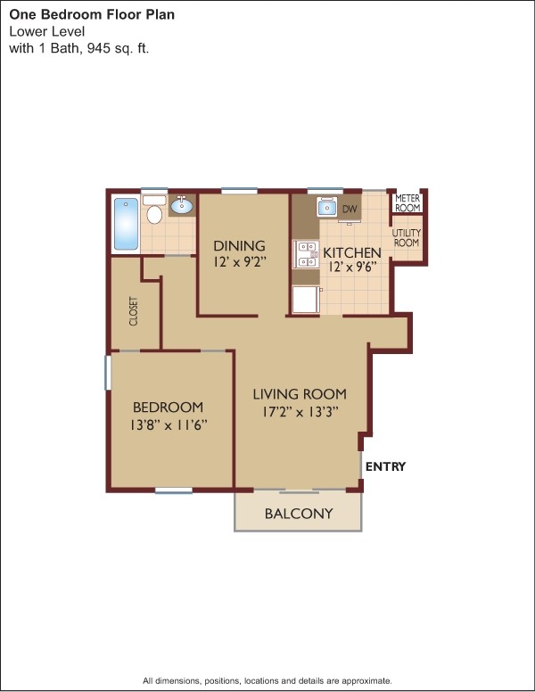 Modelo de apartamento: $1.89/sq.ft. - One Bedroom$1,7851 Dormitorio, 1 Baño, 945 sq ftDisponible Ahora![]()