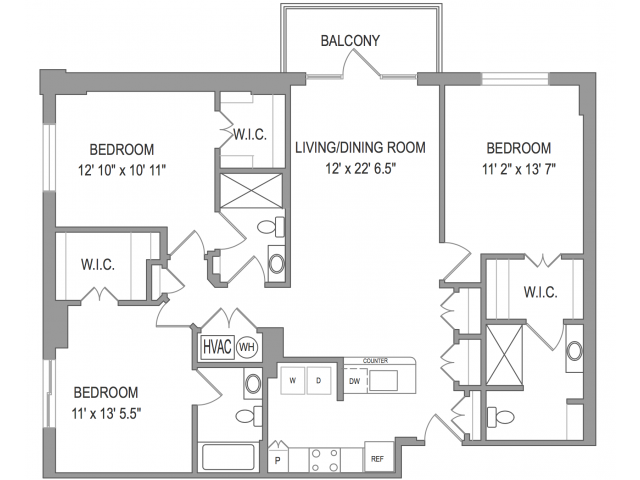 2x2 Handicap Accessible - Plano 1 3 Dormitorios