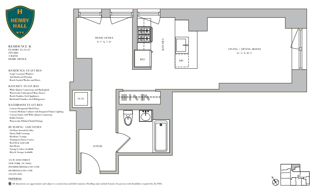 Henry Hall es la primera de tu tipo. Un complejo lugar como la propiedad estilo boutique que nunca quieras salir o de un club exclusivo para socios donde todos. Ubicado en la antigua sede de la Legacy Estudio de grabación, Henry Hall es un nuevo concepto de lujo para neoyorquinos. The classic-yet-contemporary estilo de famosos diseñadores de Ken Fulk ofrece una exclusiva escapada de la ciudad. Cada detalle ha sido minuciosamente seleccionadas para enriquecer las vidas y residentes por igual. Steel-encased ventanas de gran tamaño y pisos de madera de fresno en cada apartamento. Stark encimeras de cuarzo color blanco en la cocina contraste electrodomésticos renovados de acero inoxidable y bronce de accesorios Waterworks para disfrutar de un estilo único que solo puedes encontrarse en Henry Hall. Impresionantes hexagonal-tiled de los baños tienen pisos y paredes de piso a techo con azulejos a medida con molduras con hermosos azulejos. Alexa, pregunte Henry Hall si tengo cualquier paquete. IN Cada residencia está ubicado equipada con Amazons Dot, que cuenta con programación de Henry Hall..