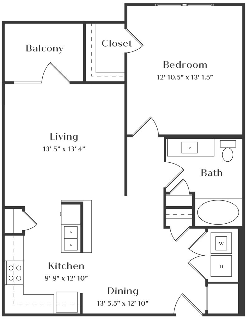 Modelo de apartamento: A2Llame para Precios1 Dormitorio, 1 Baño, 807 sq ftNo DisponibleLos planos de la planta son una interpretación artística. Todas las dimensiones son aproximadas. Los tamaños o el detalle del producto real y sus especificaciones pueden variar. No todas las características están disponibles en todos los hogares para rentar. Los precios y la disponibilidad están sujetos a cambios. El alquiler que se muestra es mensual. Se pueden aplicar ciertos cargos, por ejemplo, entrega de paquetes, recolección de basura, agua, servicios, etc. Depositos varian. Consulta a un representante para conocer detalles.
