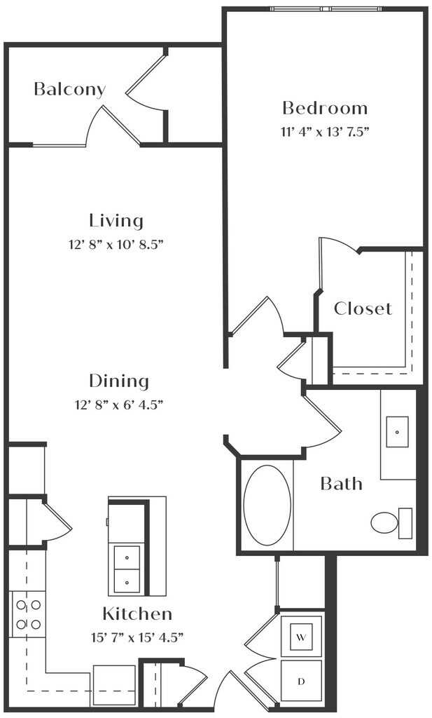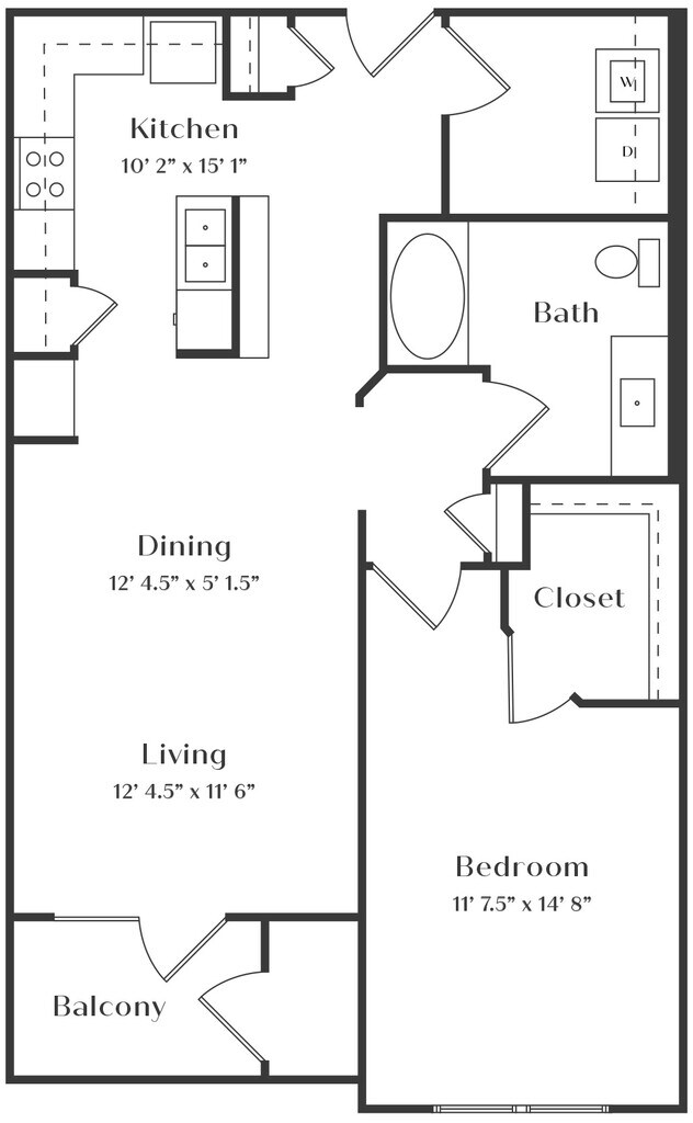 1 Dormitorio, 1 Baño, 853 pies²El más grandeEsta opción tiene las unidades más grandes para este modeloGalería del Modelo