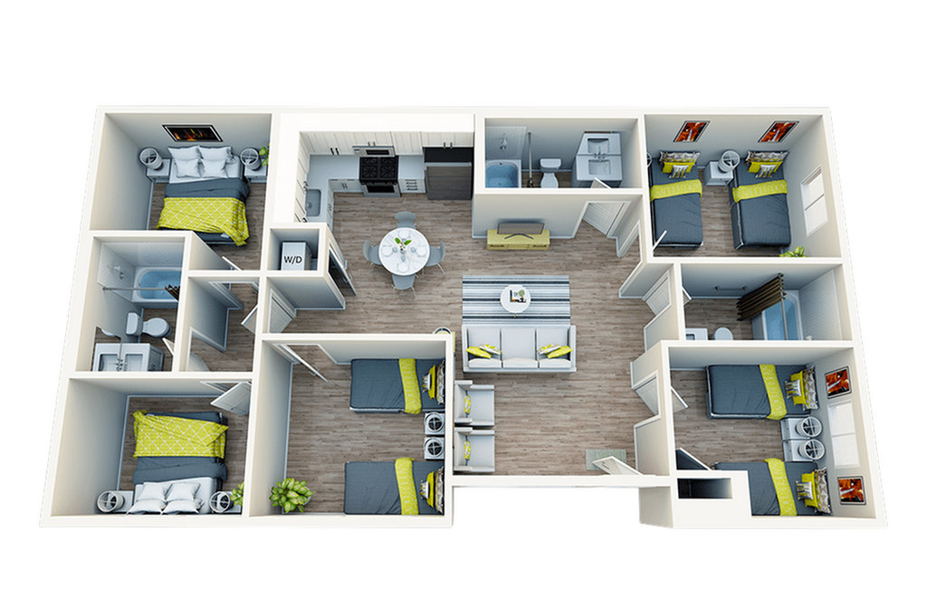 Modelo de apartamento: 5BR/3BADesde $1,4005 Dormitorios, 3 Baños, 1135 sq ftDisponible AhoraLos planos son representaciones artísticas. Todas las dimensiones son aproximadas. El producto y las especificaciones reales pueden variar en tamaño o detalle. No todas las características están disponibles en cada vivienda en alquiler. Por favor, consulta con un representante para obtener más detalles.