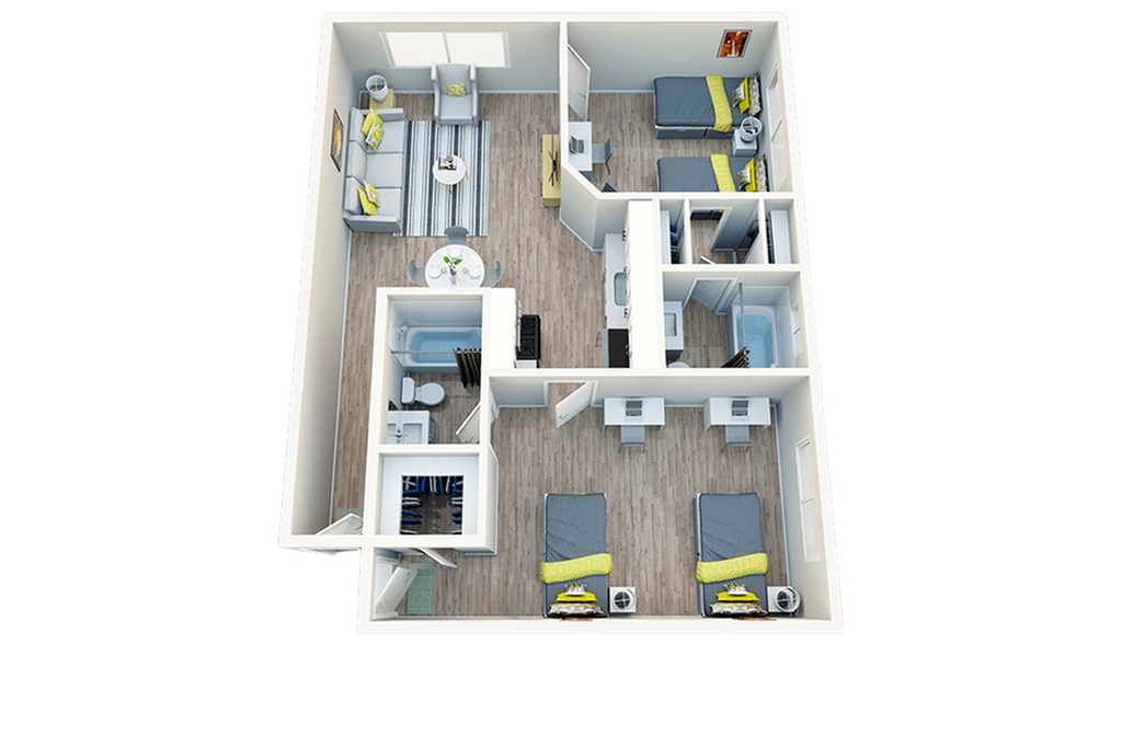 Modelo de apartamento: 4BR/2BADesde $1,4254 Dormitorios, 2 Baños, 1091 sq ftDisponible AhoraLos planos son representaciones artísticas. Todas las dimensiones son aproximadas. El producto y las especificaciones reales pueden variar en tamaño o detalle. No todas las características están disponibles en cada vivienda en alquiler. Por favor, consulta con un representante para obtener más detalles.
