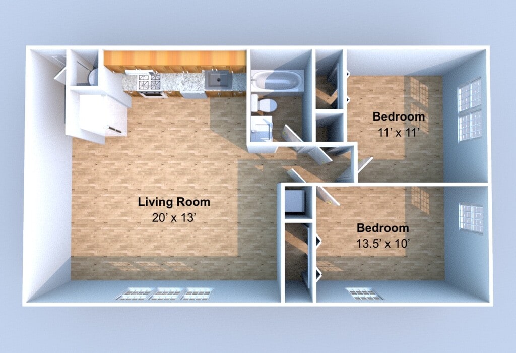 2 Beds, 1 Baths - Imagen 7 Unidad de apartamento: Unit 1Modelo de apartamento: 2 Beds, 1 Baths$1,1502 Dormitorios, 1 Baño, 880 sq ftDisponible Ahora
