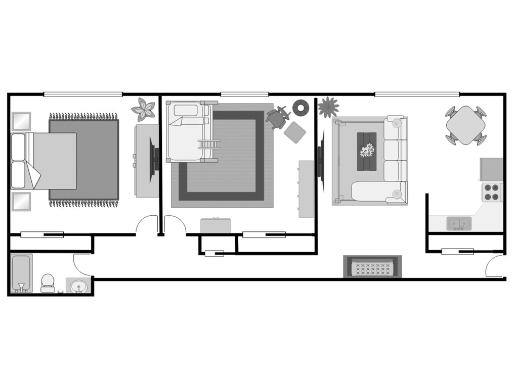 Modelo de apartamento: The Extended Stay$1,3002 Dormitorios, 1 Baño, 870 sq ftNo Disponible![]()