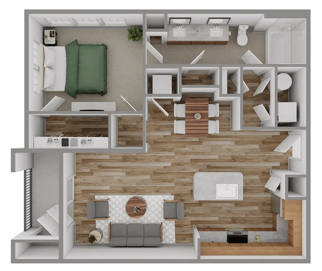 1 Dormitorio, 1 Baño, 835 pies²Disponible AhoraEl más grandeEsta opción tiene las unidades más grandes para este modeloGalería del Modelo
