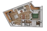 1 Dormitorio, 1 Baño, 614 pies²Disponible AhoraGalería del Modelo