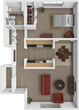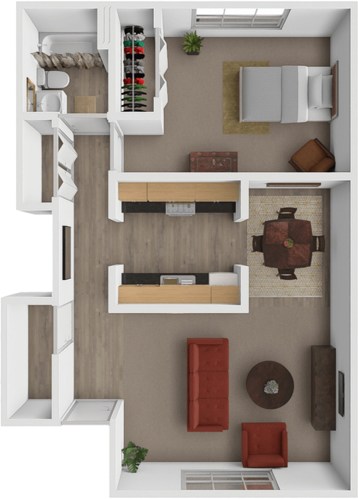 Modelo de apartamento: One bed one bath$8891 Dormitorio, 1 Baño, 612 sq ftNo Disponible![]()