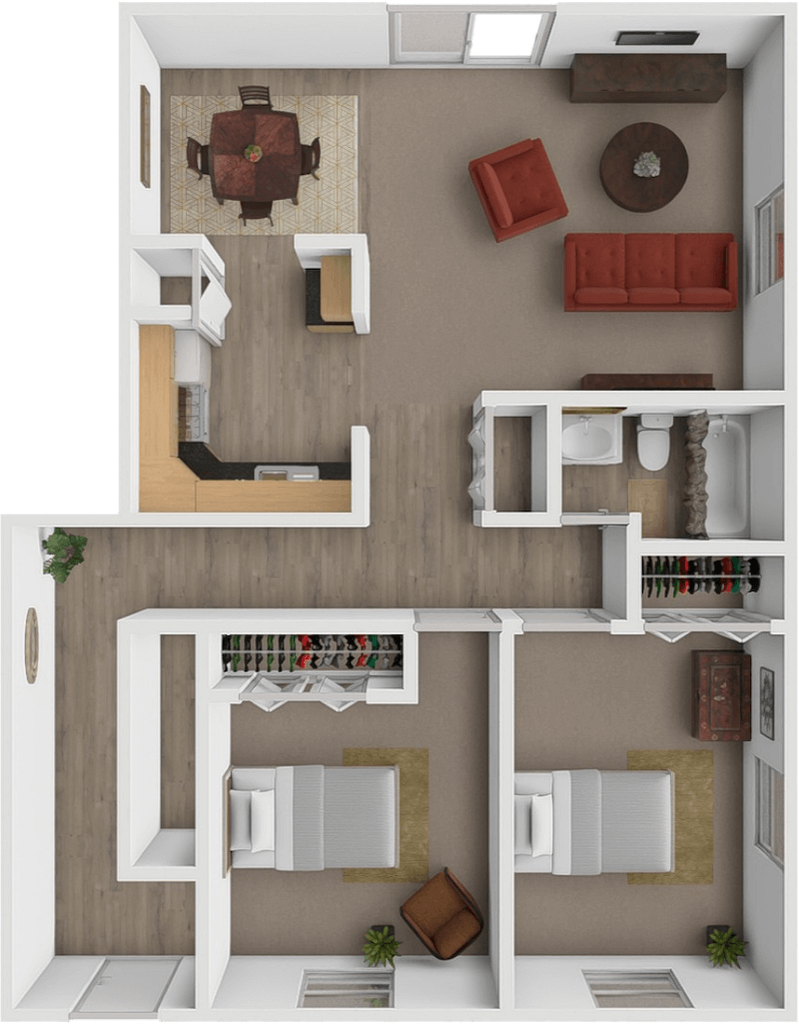 Modelo de apartamento: Two bed one bathDesde $9792 Dormitorios, 1 Baño, 864 sq ftDisponible December 3, 2025![]()