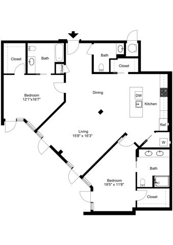 Covington - Plano 3 Unidad de apartamento: A-418Modelo de apartamento: CovingtonDesde $1,079Estudio, 1 Baño, 395 sq ftDisponible Ahora![]()
