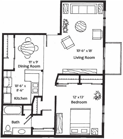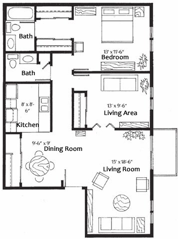 1 Dormitorio, 1 Baño, 950 pies²El más grandeEsta opción tiene las unidades más grandes para este modeloGalería del Modelo