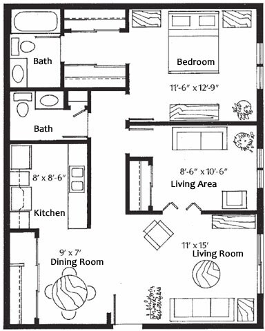 1 Dormitorio, 1 Baño, 780 pies²Galería del Modelo