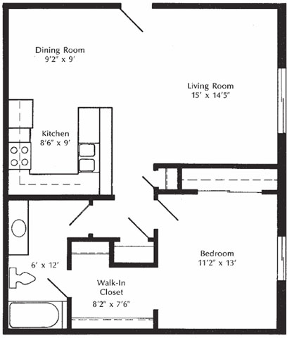 Modelo de apartamento: A$9851 Dormitorio, 1 Baño, 680 sq ftNo Disponible![]()