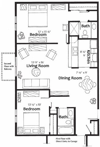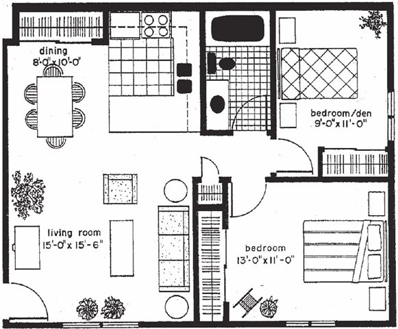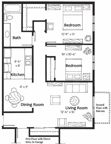 2 Dormitorios, 1 Baño, 850 pies²Galería del Modelo