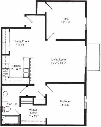 Modelo de apartamento: One Bedroom Custom$1,0151 Dormitorio, 1 Baño, 810 sq ftNo Disponible![]()