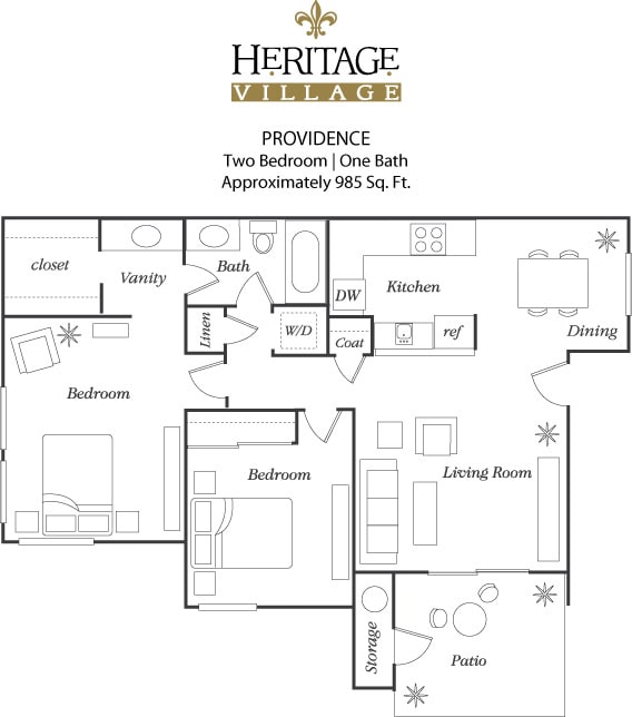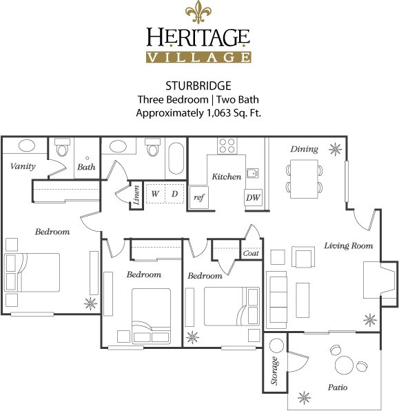 Heritage Village ofrece apartamentos de 1 a 3 Dormitorios desde $2,277 con 730–1,063 pies cuadrados. Aquí está el precio actual y la disponibilidad: