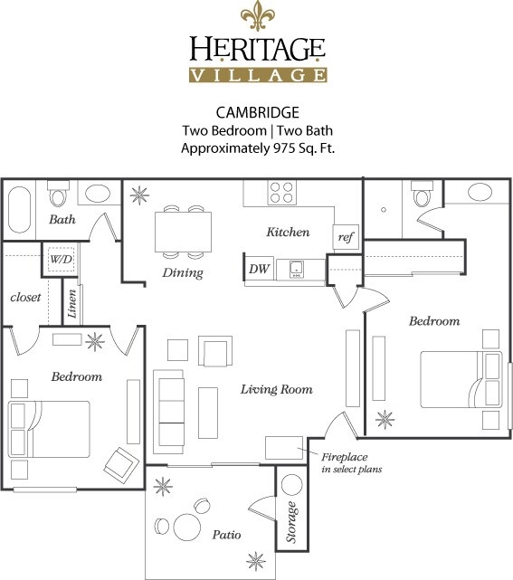 Modelo de apartamento: CambridgeDesde $2,7862 Dormitorios, 2 Baños, 975 sq ftDisponible AhoraPlanosFotos![]()