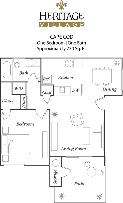 Modelo de apartamento: Cape CodDesde $2,2771 Dormitorio, 1 Baño, 730 sq ftDisponible Ahora![]()