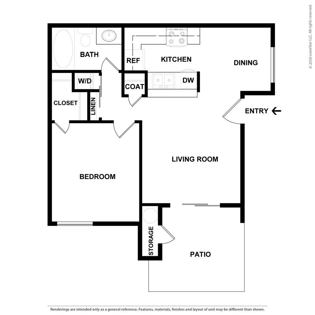1 Dormitorio, 1 Baño, 730 pies²Disponible AhoraGalería del Modelo