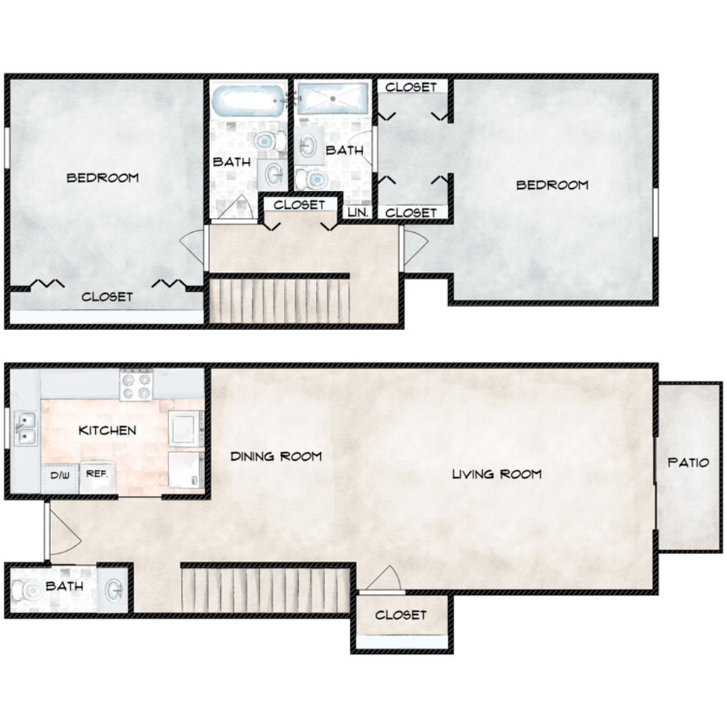 2/2.5 TH - Imagen 10 Unidad de apartamento: 544Modelo de apartamento: 2/2.5 TH2 Dormitorios, 2.5 Baños, 1300 sq ftDisponible AhoraPlano: 2/1