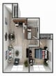 1 Dormitorio, 1 Baño, 725-750 pies²Disponible AhoraEl más grandeEsta opción tiene las unidades más grandes para este modeloGalería del Modelo
