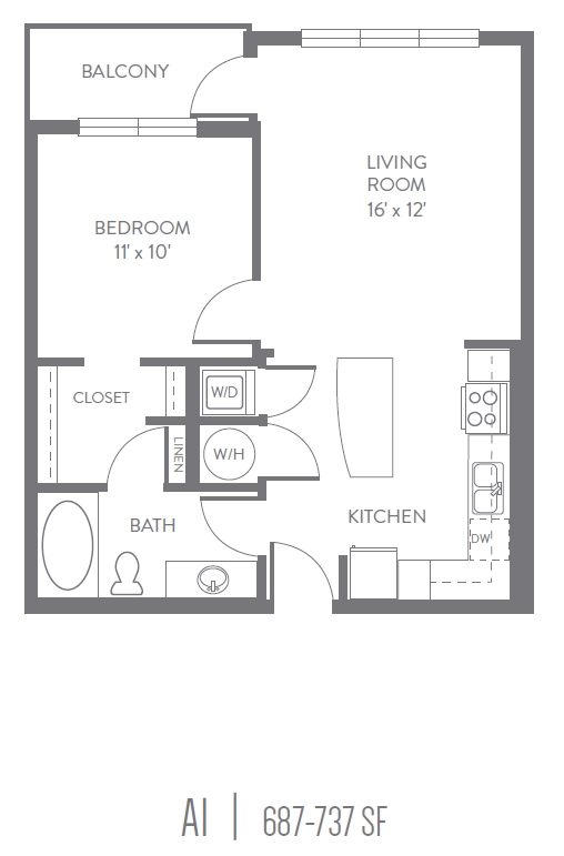 1 Dormitorio, 1 Baño, 750 pies²Galería del Modelo