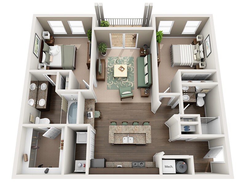 2 Dormitorios, 2 Baños, 1042 pies²Galería del Modelo