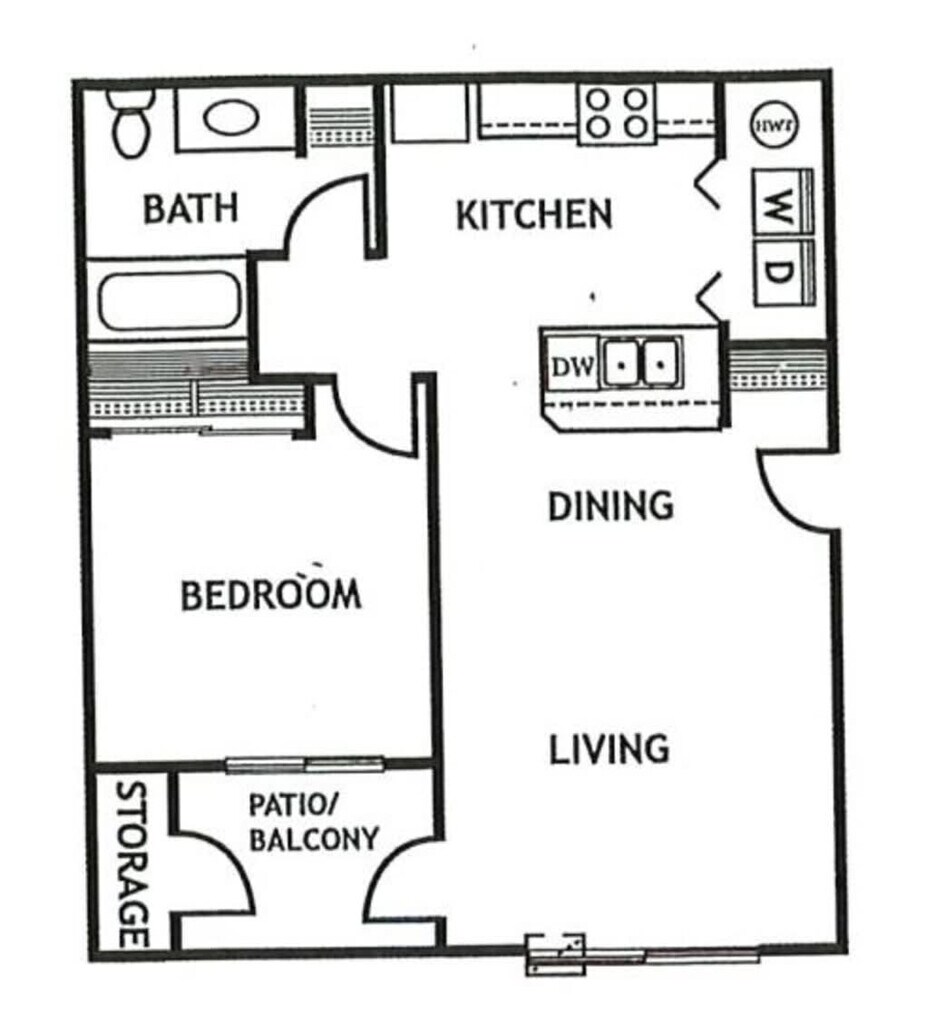 Modelo de apartamento: 1 Bed 1 BathLlame para Precios1 Dormitorio, 1 Baño, 620 sq ftNo Disponible![]()
