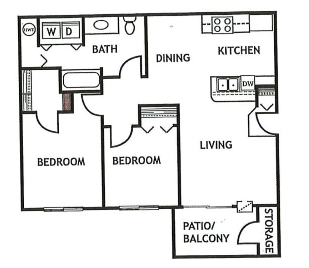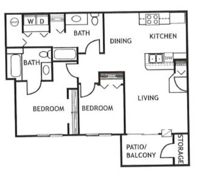 Modelo de apartamento: 2 Bed 2 Bath$1,2102 Dormitorios, 2 Baños, 895 sq ftDisponible Ahora![]()